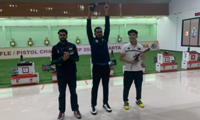 India have opened its campaign at Jakarta Asian Olympic Qualifying event, which also doubles up as the 2024 Asia Shooting Championship for rifle and pistol shooters, with a gold in the men’s 10m air pistol team event.