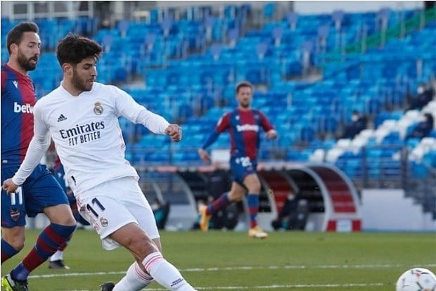 Real Madrid was reduced to 10 men in the seventh minute when central defender Eder Militao was sent off for bringing down Levante forward Sergio Leon, but they took the lead soon afterward as Marco Asensio did well to finish off a rapid counter-attack.