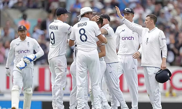 Broad was on a roll now and Head feathered behind an edge to Jonny Bairstow on four to give England another wicket. It was Broad's 20th wicket of the series and left Australia on 127-4, still 156 runs behind England's total of 283.