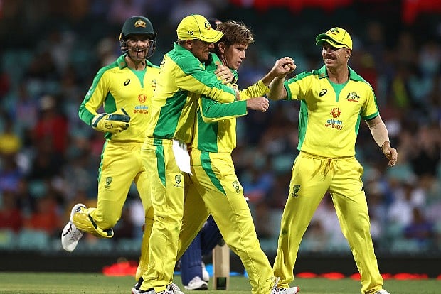 India lost their first three wickets inside the first 10 overs to lose momentum. Both Agarwal and fellow opener Shikhar Dhawan had given India a turbo-charged start with a 53-run opening stand in just over five overs. But then Hazlewood struck with three short-pitched deliveries to dent India's march, picking Mayank Agarwal, Virat Kohli, and Shreyas Iyer.