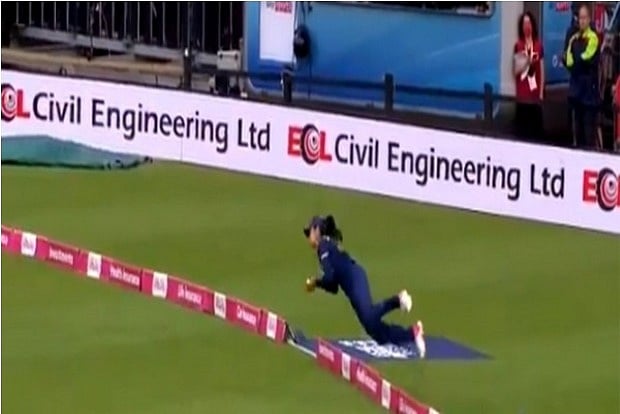 India might have lost the first T20I against England, but Harleen's acrobatic effort in the match won the hearts of the fans as she pulled off a stunner. In the 19th over of England innings, Jones whacked the ball towards wide long-off and Harleen produced a sensational effort to dismiss the batter. Having caught the ball, she realised that the momentum would be taking her over the ropes. The presence of mind from the cricketer saw her throw the ball up in the air and dive back to complete the catch.