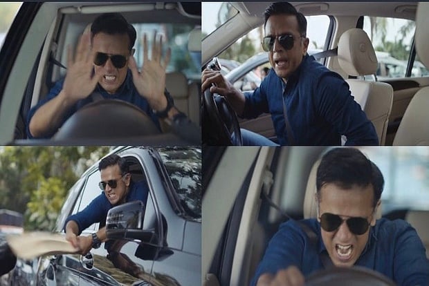The advertisement featuring an angry Dravid was all over the social media with fans posting a collage of an angry former batsman venting out his anger on the steering wheel and making angry gestures at people stuck in a traffic jam.