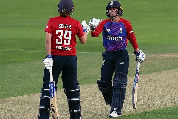 India managed to remove Tammy Beaumont (11) early, with the score on 20, but then faced an onslaught from Danielle and Natalie Sciver (42 off 36, 4x4s), who both added 112 runs for the second wicket in 12.5 overs.