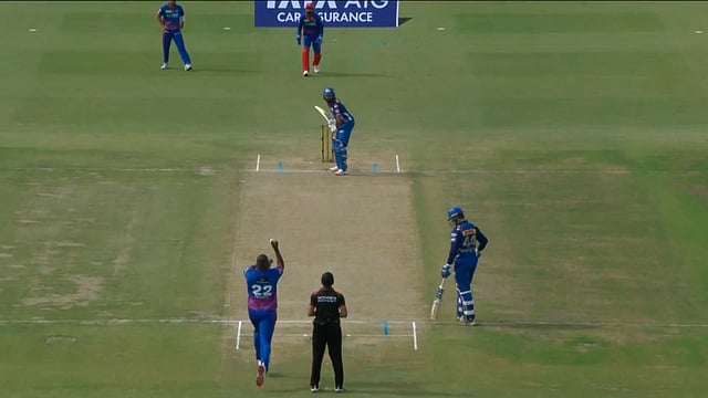 Two balls later, he produced a return catch to dismiss Tilak Varma for a duck, leaving Mumbai Indians two down inside the powerplay.