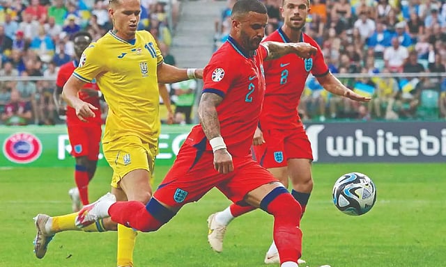 WROCLAW: England fought back to salvage a 1-1 draw in its Euro 2024 qualifier against Ukraine on Saturday to stay six points clear atop Group C after Kyle Walker scored from a sublime pass by Harry Kane for his first international goal.