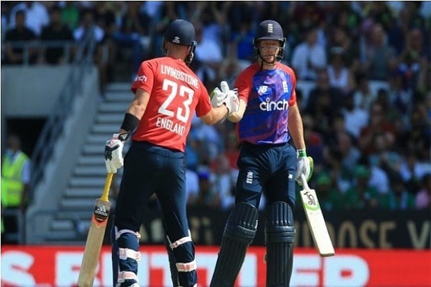Batting first, Pakistan made 40 off their first five overs with Mohammad Rizwan (76 of 57) with early sixes off Saqib Mahmood and Jordan. But the usually reliable captain Babar Azam (11 off 13) struggled.