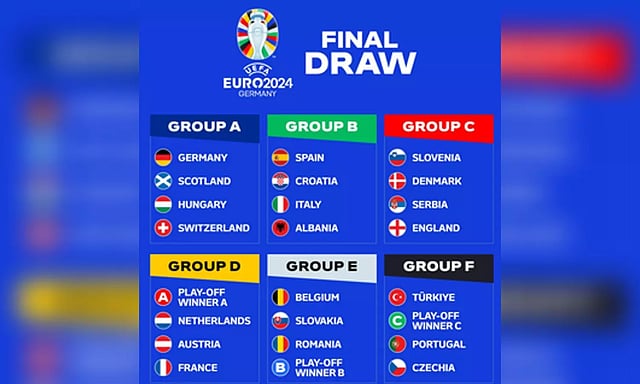 HAMBURG: The 2024 UEFA European Championship group draw was unveiled here with holders Italy will face Spain for the fifth EURO in a row, while hosts Germany will meet Scotland in the opening game of the group stage on June 14, 2024.