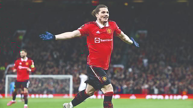 Marcel Sabitzer’s quick-fire double in the first half had put Erik ten Hag’s United team in control of the tie, but Sevilla, record six-time Europa League champion, pulled one back in the 84th minute when Jesus Navas’s shot pinged off the feet of Tyrell Malacia and goalkeeper David de Gea into the net.