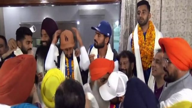 Right after their touchdown, family members greeted the players with garlands and warm hugs, before accepting congratulations from the state political leaders such as minister Kuldeep Singh Dhaliwal and Congress MP Gurjeet Singh Aujla.