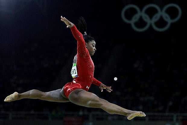 A day after a slipped foot off the balance beam dashed the American’s hopes of leaving Rio with a record haul of five golds for a female gymnast, she was back to her hip-shaking best to clinch the floor title with 15.966 points, ahead of team mate Aly Raisman.