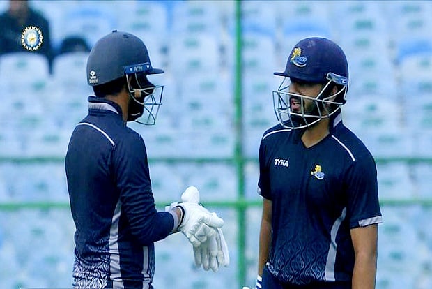 With Tamil Nadu in deep trouble team's most experienced batter, Dinesh Karthik came in and forged a much-needed partnership with Baba Indrajith. The duo steadied the ship and slowly increased the current run rate of the team. Both the batters targeted the left-arm spinners Mayank Dagar and Akash Vasisht as they conceded runs with over 7 runs per over. Dinesh Karthik notched up his century and Indrajith scored a half-century as the duo went on to put 202-run partnership for the fifth wicket. Digvijay Rangi was introduced into the attack and even he went for plenty conceding 35 runs in three overs at an economy rate of 12.66. But Rangi finally broke the partnership dismissing Baba Indrajith for 80 of just 71.