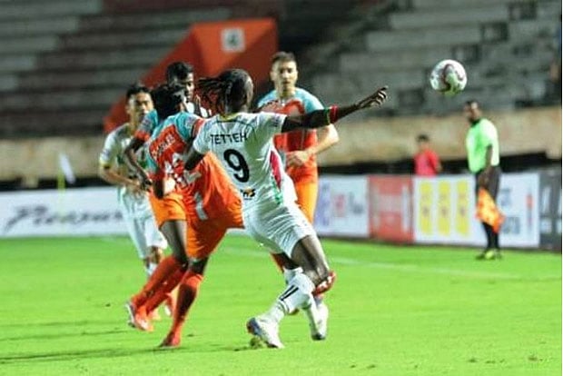 Pedro Manzi could have closed the game once and for all in added time, but TRAU custodian Gurpreet denied him, as he dived low at the near post to tip Manzi's shot away.