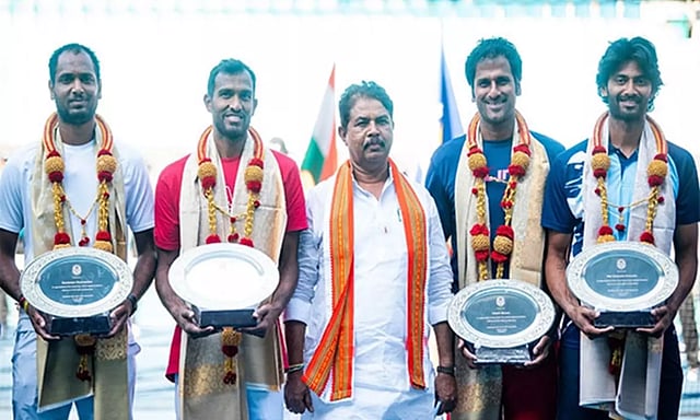 "It's a proud moment for the Karnataka State Lawn Tennis Association to have Davis Cup stars participating at the DafaNews Bengaluru Open 2024. Their achievement in Pakistan was historic and inspiring. We extend our heartfelt congratulations to the entire team for their remarkable victory in this historic match and we look forward to celebrating many more successes in the future," President of Karnataka State Lawn Tennis Association R Ashoka said. The Indian team thrashed Pakistan 4-0 to secure their place in the Davis Cup World Group I earlier this month. The members of the winning team Ramkumar Ramanathan, Sriram Balaji, Saketh Myneni and Nikki K Poonacha were present at the felicitation ceremony as they will also feature in the ongoing tournament.
