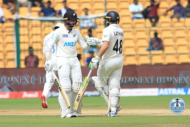 BENGALURU: After collapsing the Indian batting unit by bowling them out for just 46 runs in 31.2 overs, the Kiwi batters, led by Devon Conway, posted a hefty lead of 134 runs at the end of the second day’s play in the three-Test series here at Chinnaswamy Stadium on Thursday.