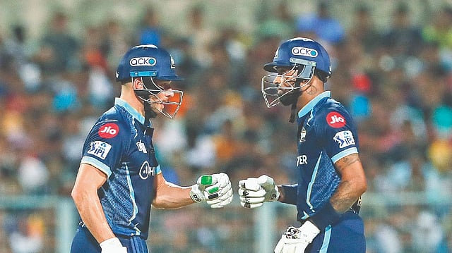 KOLKATA: David Miller played a ballistic knock of 68 from 38 balls and captain Hardik Pandya's 40 off 27 balls guided debutants Gujarat Titans to a seven-wicket win over the inaugural champions Rajasthan Royals at the Eden Gardens here on Tuesday.