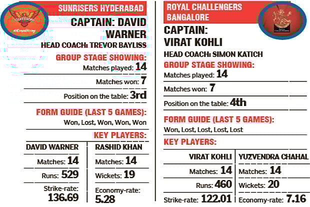 On the bowling front, Hyderabad has found its right combination in Sandeep Sharma, Holder, Shahbaz Nadeem, Thangarasu Natarajan and Rashid Khan. SRH’s rival RCB has a lot to ponder over.