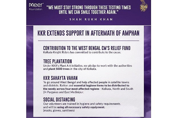 "Kolkata Knight Riders has committed to contributing to the West Bengal Chief Minister's Relief Fund.