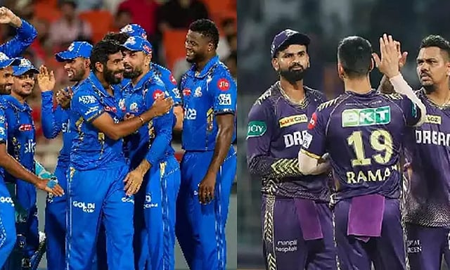 MUMBAI: Kolkata Knight Riders face Mumbai Indians in an Indian Premier League match. KKR aims to improve consistency and secure a playoff spot, while MI seeks to improve their form despite their low playoff chances. KKR has a powerful batting lineup but needs to strengthen their bowling, while MI struggles with batting consistency. Key players include Rohit Sharma, Jasprit Bumrah, Tilak Varma for MI, and Shreyas Iyer, Andre Russell, Nitish Rana for KKR.