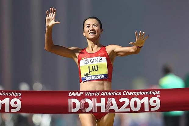 Another Chinese walker Yang Jiayu, the defending champion, was disqualified after she received her fourth red card with just over 1km to go.