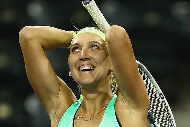 Later, Russia’s Elena Vesnina ousted German second seed Angelique Kerber 6-3 6-3 to reach the quarter-finals. The victory was the 14th-seeded Vesnina’s first against a top-three player and put the doubles specialist into a last-eight showdown against Venus Williams.