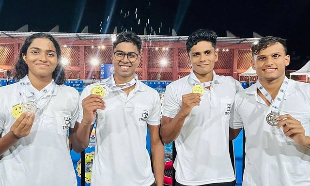 Later in the day, the Tamil Nadu contingent had more reasons to celebrate as Adhithya Dinesh, Bala Ponni, Bendection, and Deeksha bagged a silver in the Mixed 4x100 freestyle event.