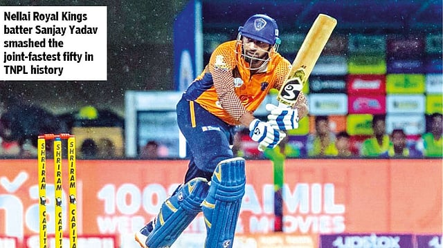 CHENNAI: Sanjay Yadav and Baba Aparajith shared a stunning 99-run partnership off just 39 deliveries for the unconquered third wicket as Nellai Royal Kings defeated Dindigul Dragons by eight wickets in a rain-curtailed Tamil Nadu Premier League 2022 match at the NPR College Ground in Dindigul on Thursday.
