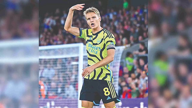 LONDON: Arsenal captain Martin Odegaard’s penalty secured a 1-0 win over Crystal Palace after the visitor finished with 10 men following Takehiro Tomiyasu’s sending off for two yellow cards in their Premier League clash at Selhurst Park on Monday.