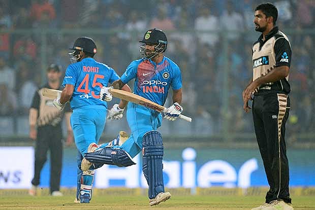 Rohit, who got a reprieve on 16, slammed six sixes and four boundaries in his 55-ball knock. The left-handed Dhawan, who represents Delhi in the domestic circuit, blazed his way to 80 off only 52 balls, hitting 10 fours and two sixes.