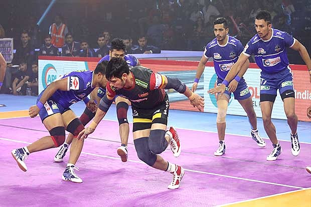 In the very next minute, Steelers captain Dharmaraj Cheralathan tackled Mohit Sehrawat and got the Steelers within reach of the Bulls.