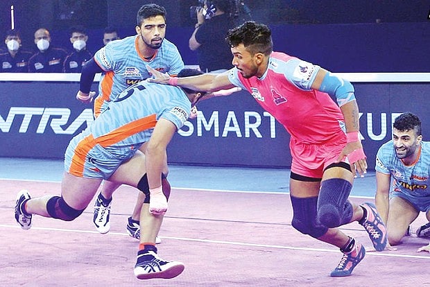 Raiders Maninder and Deshwal picked up from where they left off, completing their ‘Super 10s’ in the second period. With just five minutes remaining, Bengal held a slender 3-point advantage but Jaipur reduced the deficit with a successful tackle.