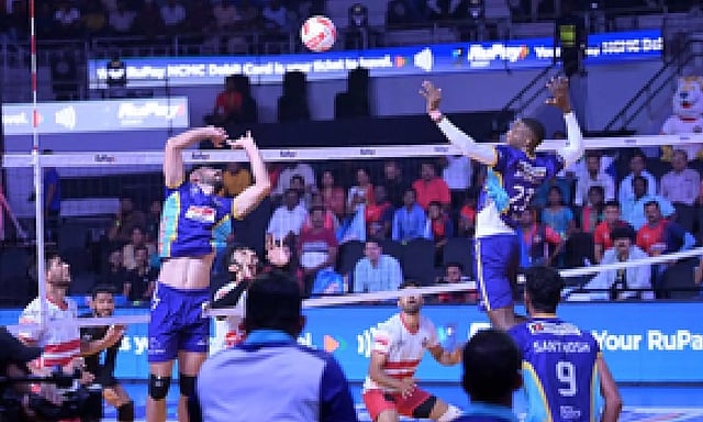 CHENNAI: Delhi Toofans on Sunday picked up a dominant 15-9, 16-14, 17-15 win over the Kolkata Thunderbolts in the third season of the Prime Volleyball League at the Jawaharlal Nehru Indoor Stadium, here on Sunday. Saqlain remained the beating heart of Delhi's tactics, as the setter spread his passes to Amal and Santhosh, who was named the Player of the Match, to get Delhi's offence going from both ends.