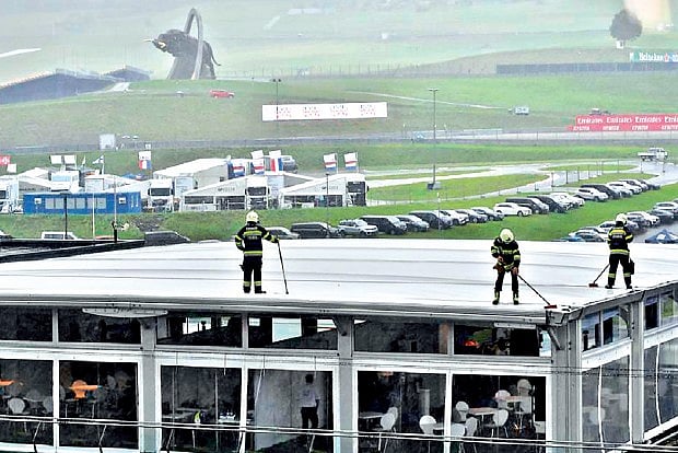 But the second date on the calendar at the same track has been hit with heavy rainstorms, widely forecast on Friday, swept through the region early Saturday and led to the abandonment of a Formula Three feature race after only 14 of a scheduled 24 laps.