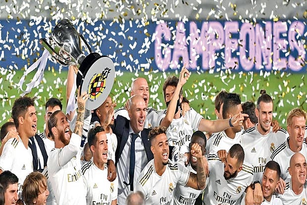 It means Madrid claims its third La Liga title in 12 years, after a relentless run of form since Spanish football resumed on June 11 following the coronavirus pandemic. Zinedine Zidane’s side has won 10 games out 10 since the restart. It has conceded four goals in that time and never been behind in a match.