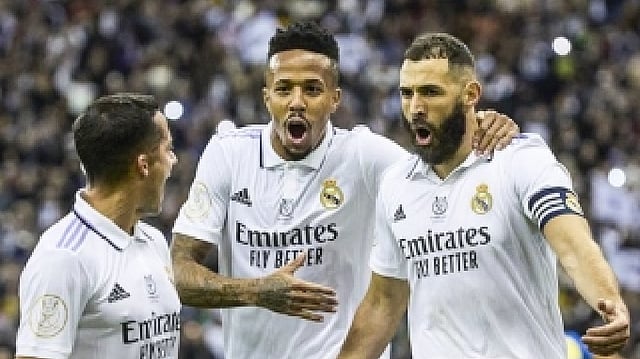 The first half saw each side have spells of pressure, with Rodrygo firing wide for Real Madrid, before Benzema's run ended with his shot just going wide of the near post and Valverde shooting just wide from 30 meters.