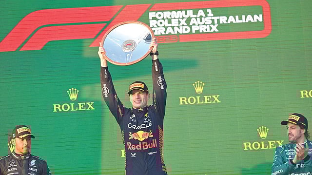 MELBOURNE: Max Verstappen won the Australian GP on Sunday as two late red flags and a slew of crashes threw the race into chaos before the Red Bull driver was allowed a processional victory lap around Albert Park. Double defending champion Verstappen was leading Mercedes’s Lewis Hamilton with a few laps left when Kevin Magnussen crashed his Haas into a wall, leaving debris on the track and halting the race. The cars returned to the grid with fresh tyres for a two-lap sprint to decide the winner, but in a chaotic restart, Williams driver Logan Sargeant drove into the back of AlphaTauri’s Nyck de Vries to knock both of them into gravel at turn one. Alpine drivers Pierre Gasly and Esteban Ocon then crashed into each other to leave a trail of debris on the track and trigger another red flag, the third and last of the race. After lengthy deliberations, stewards decided that the race would finish with one lap behind a safety car in the order of the previous start – minus the cars that had crashed out. That allowed Verstappen (2:32:38.371) to earn his second win of the season ahead of Hamilton (+0.179 seconds), with Aston Martin’s Fernando Alonso (+0.769 seconds) third in a race in which eight of the 20 cars failed to finish.