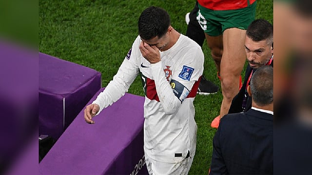AL THUMMA [QATAR]: Cristiano Ronaldo broke down in tears as he made his way down the tunnel after Portugal's quarterfinal FIFA World Cup loss to Morocco on Saturday.