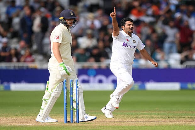 India got three wickets in the session, a well-set Dom Sibley (28 off 133), Jonny Bairstow (30 off 50), and Dan Lawrence (25 off 32) who missed a straight ball off Shardul Thakur.
