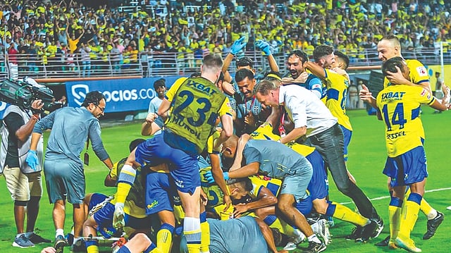 Four minutes from time, the constant pressure from Kerala Blasters paid off as it got its noses in front. Substitute Bryce Miranda curled a cross into the box from the left flank. Amrinder Singh came out to punch it but missed the ball as it bounced and fell to Sandeep who headed it into an empty net.