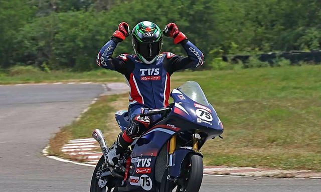 CHENNAI: Chiranth Vishwanath from Bengaluru and his TVS Racing team-mate Pune’s Sarthak Chavan hogged the limelight with thrilling wins in the two Pro-Stock categories after surviving close battles in the third round of the MRF MMSC FMSCI Indian National Motorcycle Racing Championship 2024 – Powered by STORM at the Madras International Circuit, here on Saturday. Incidentally, both the 17-year-old mavericks recorded the grand “treble” of pole position, fastest lap and race win.
