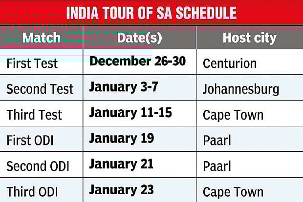The CSA and the Board of Control for Cricket in India (BCCI) on Saturday announced that the tour would go ahead but said that the India team’s departure would be postponed by a week and T20Is would no longer be a part of the schedule, in view of the rising number of COVID-19 cases due to emergence of the Omicron variant in South Africa.