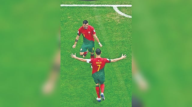 LUSAIL (QATAR): A second half brace from a stunning Bruno Fernandes fired Portugal into the last 16 of the World Cup on Monday to join France and Brazil, after a 2-0 win that outclassed an uninspiring Uruguay given little chance to get into the match.