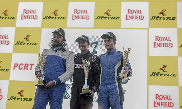 In the Royal Enfield Continental GT Cup presented by JK Tyre, which provided a lot of thrill, Navaneeth Kumar from Pondicherry was first after the race was cut to six laps due to an accident. Navaneeth timed 7:48.397. Anish Shetty was second (7:50.894). Though Rohan R was classified as third he had to be removed from the track following an accident.