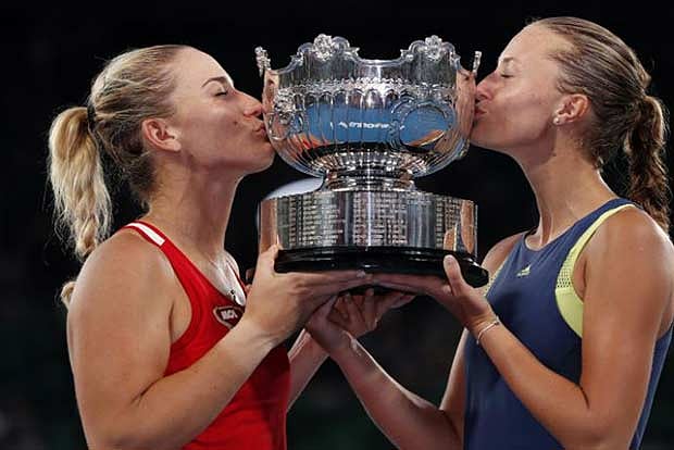 Hungarian Timea Babos and France’s Kristina Mladenovic defeated Russian duo Ekaterina Makarova and Elena Vesnina 6-4 6-3 to win the women’s doubles title at the Australian Open on Friday.