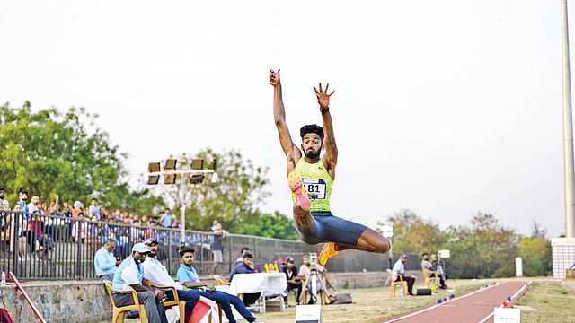 He opened with 8.05m and followed it up with 8.26m before finding the power and speed to get to 8.42m. Kerala’s Muhammed Anees Yahiya was a distant second at 7.85 metres.