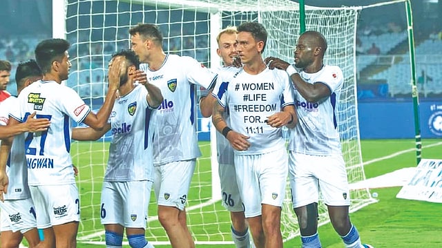 In CFC’s 1-0 away victory over East Bengal FC in Kolkata on Friday, Vafa netted the winning goal with a thumping header, following which he came up with a ‘powerful’ celebration. After running to the camera behind the goal, the towering centre-back partially removed his jersey to show a message that read: “#WOMEN #LIFE #FREEDOM FOR… 11:11”