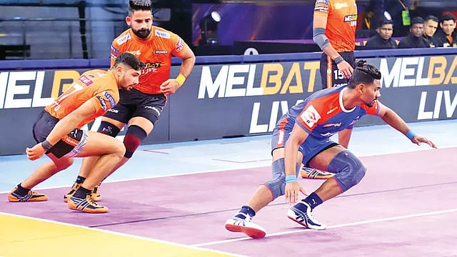 PANCHKULA: Haryana Steelers continued its winning run at home as it dismantled U Mumba to clinch a 46-40 win in the Pro Kabaddi League Season 10 match at the Tau Devilal indoor stadium in Panchkula on Saturday. Haryana Steelers’ Vishal Tate, making his PKL Debut, was the star of the game with 15 raid points while Naveen Kundu completed a High 5.