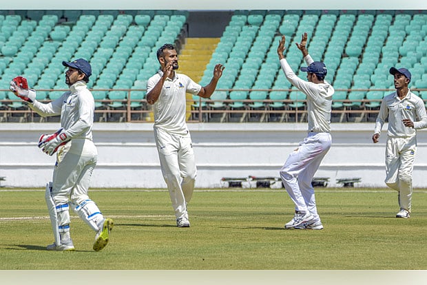 Bengal pacers lifted their game in the final session with Akash Deep castling Jadeja with a sharp incoming ball soon after the batsman completed his second half century of the season. Two overs later, Porel trapped Saurashtra’s leading run-getter Sheldon Jackson who had got going with two cover drives off Kumar’s tempting half-volleys. Hero of the semi-final against Karnataka, Kumar was guilty of offering too many freebies to the opposition.