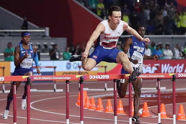 Norway’s Karsten Warholm completed a perfect season by blazing to world championship gold in the 400 metres hurdles on Monday while Abderrahman Samba finally gave the hosts something to cheer by claiming a bronze to secure Qatar’s first medal.
