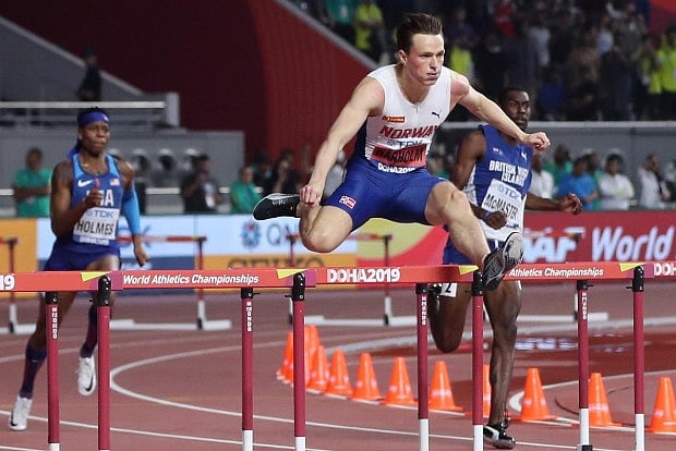 As the sole competitor in the men's 300m hurdles event, home favorite Warholm clocked 33.78s, beating the previous world's best performance of 34.48s set by Briton Chris Rawlinson in 2002.