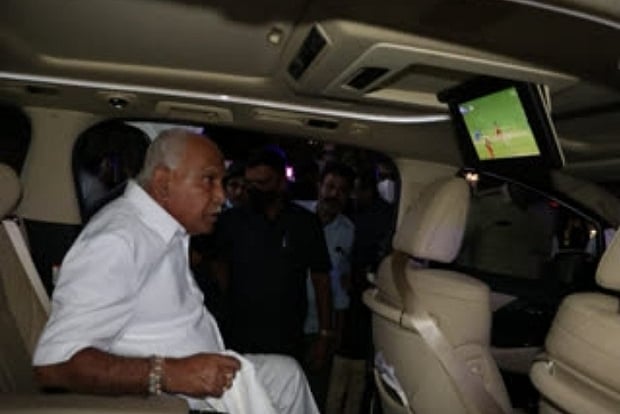Yediyurappa was engrossed in the match even as the people stood outside his car to welcome him.